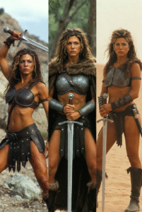 In the image, the actress appears in a strikingly unfamiliar form. Her sharp gaze, serious expression, and highly cinematic style make her almost unrecognizable as the Hollywood icon long associated with warmth and approachability. Gone is the friendly charm audiences are used to; instead, this version of Aniston carries a mysterious, even dangerous aura, evoking characters from action or fantasy worlds.